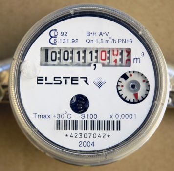 Az alábbi vízmérőn balról az első négy számjegy jelenti az "egész" m3-t. A következő három számjegyet nem kell leolvasni, ezek az egész m3 alatti fogyasztást mutatják. Jelen esetben a vízmérő állás 11 m3.